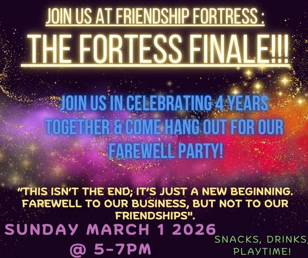 It is with full hearts and deep gratitude that we share some important news on this Valentine’s Day Eve: Friendship Fortress will be closing. Our doors will remain open through March 1, 2026, so families can continue to visit and use any remaining gift cards or play passes.
